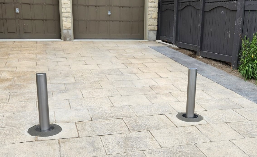 Driveway bollard installation prevents auto theft with automated retractable bollards.